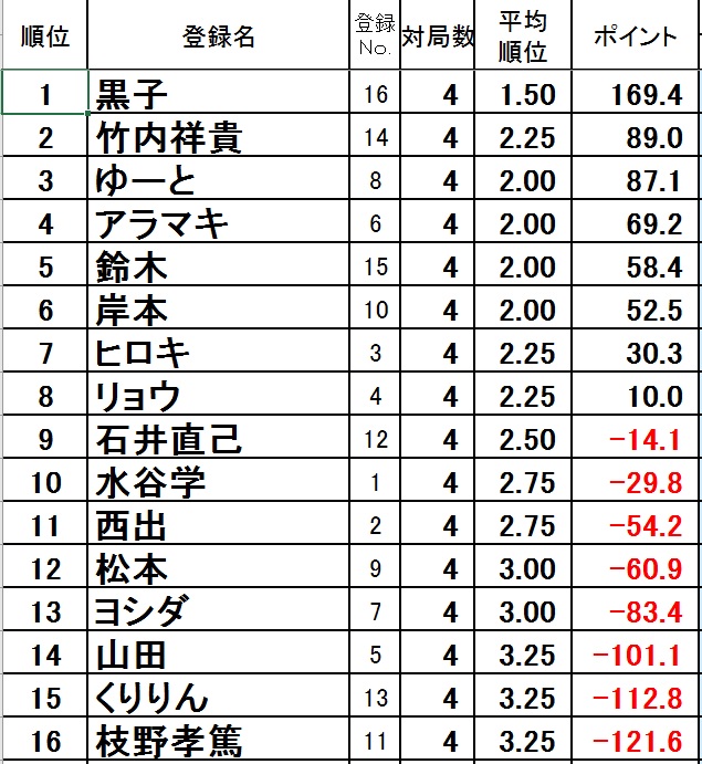 (黒子が1位だったため繰上りで竹内様の優勝とさせていただきました)